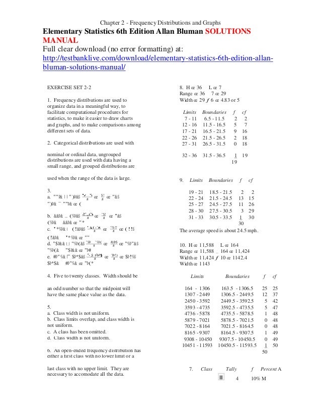 Elementary statistics 6th edition allan bluman solutions manual