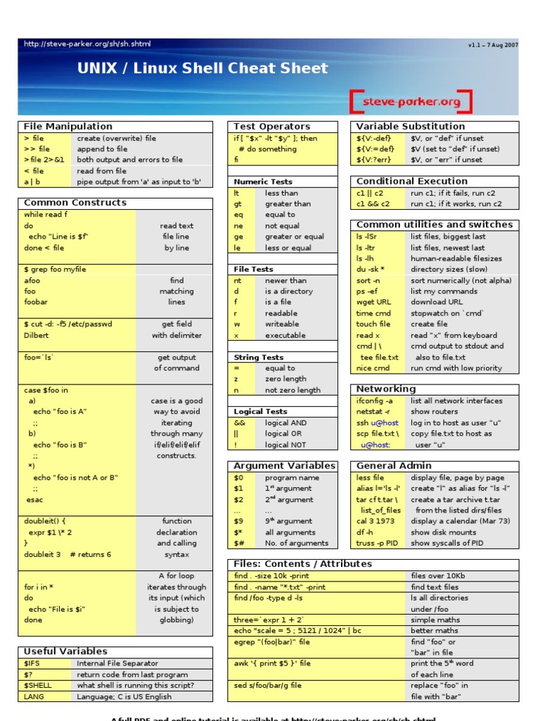 Bash Script Cheat Sheet Unix Software Computer Engineering