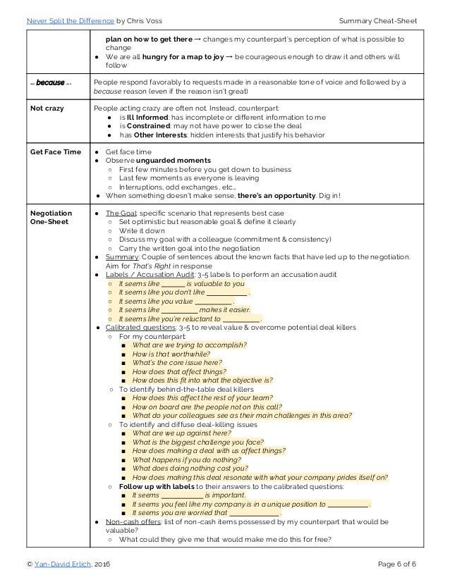 Chris Voss Book Notes Never Split The Difference Cheat Sheet