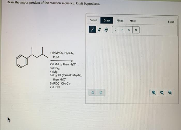 Create a free account to view solutions. Select draw 2c rings more erase / h o 1. Omit byproducts such as salts or methanol. Draw the major product of the reaction sequence. Draw the main product of the reaction sequence?