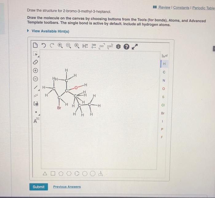 Draw The Structure For 2 Bromo 3 Methyl 3 Heptanol - Dear students, question is draw the aromatic compound. So all hydrogen atoms, including those of the ring here, the. Understand functional groups tables, use iupac name charts, and see iupac name examples. The naming of alcohols can be divided into three. Draw the molecule on the canvas by choosing buttons from the tools (for bonds), atoms, and advanced. For this problem, draw all hydrogen atoms explicitly. Draw the condensed structural formula for each of the following: Draw the molecule by placing atoms on a grid and connecting them with bonds. Web exercise \(\pageindex{2}\) draw the structures for the iupac names below. Taline talon is nothing but methyl benzene.