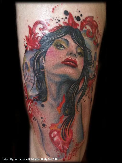 Gothic pinup tattoo by Hannah Flowers Pin Up Tattoos, Head Tattoos