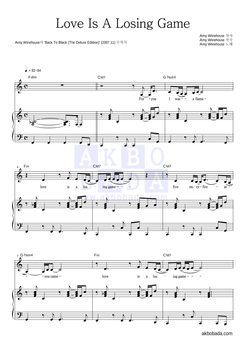Amy Winehouse Love Is A Losing Game 악보 악보바다