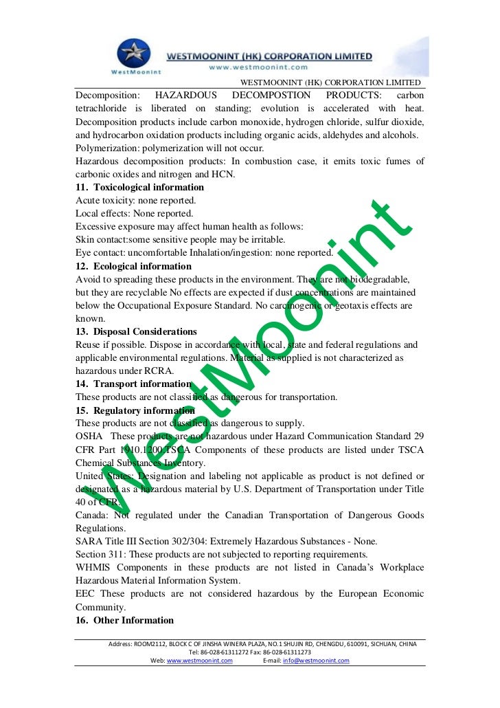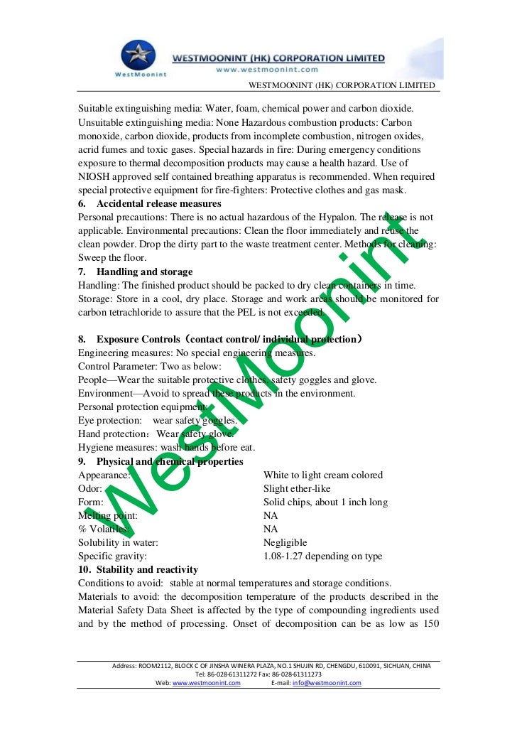 Chlorinated polyethylene material safety data sheet