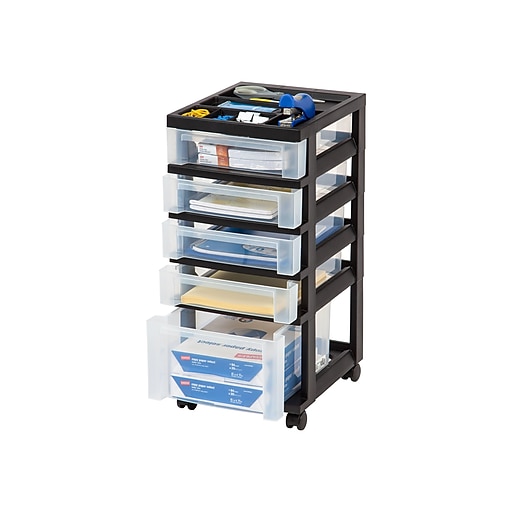 IRIS® Plastic 5Drawer Organizer, Black and Clear (116865) Staples