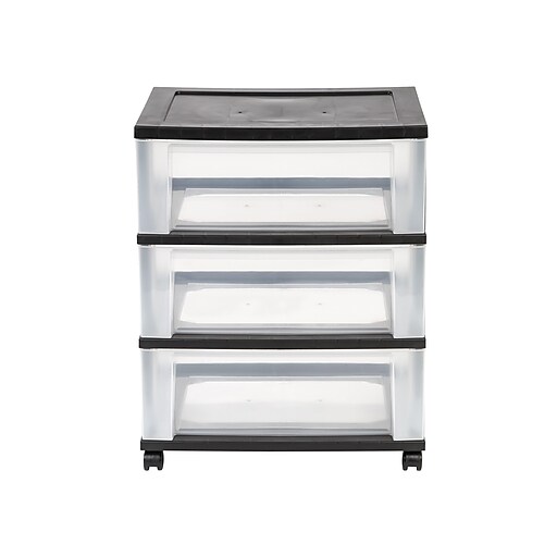 Iris 3Drawer Durable Storage Cart, Black/Clear (53182) Staples