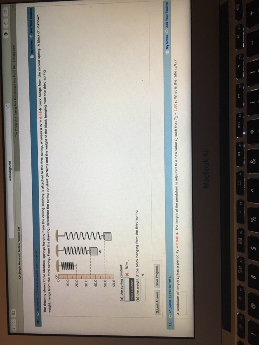 In summary, the three springs have the following constants: Web the drawing shows three identical springs hanging from the ceiling. Web the drawing shows three identical springs hanging from the ceiling. Nothing is attached to the first spring, whereas a 4.50 − n block hangs from the second spring. Unstretched length of the spring, = 20.0cm = 0.2m.