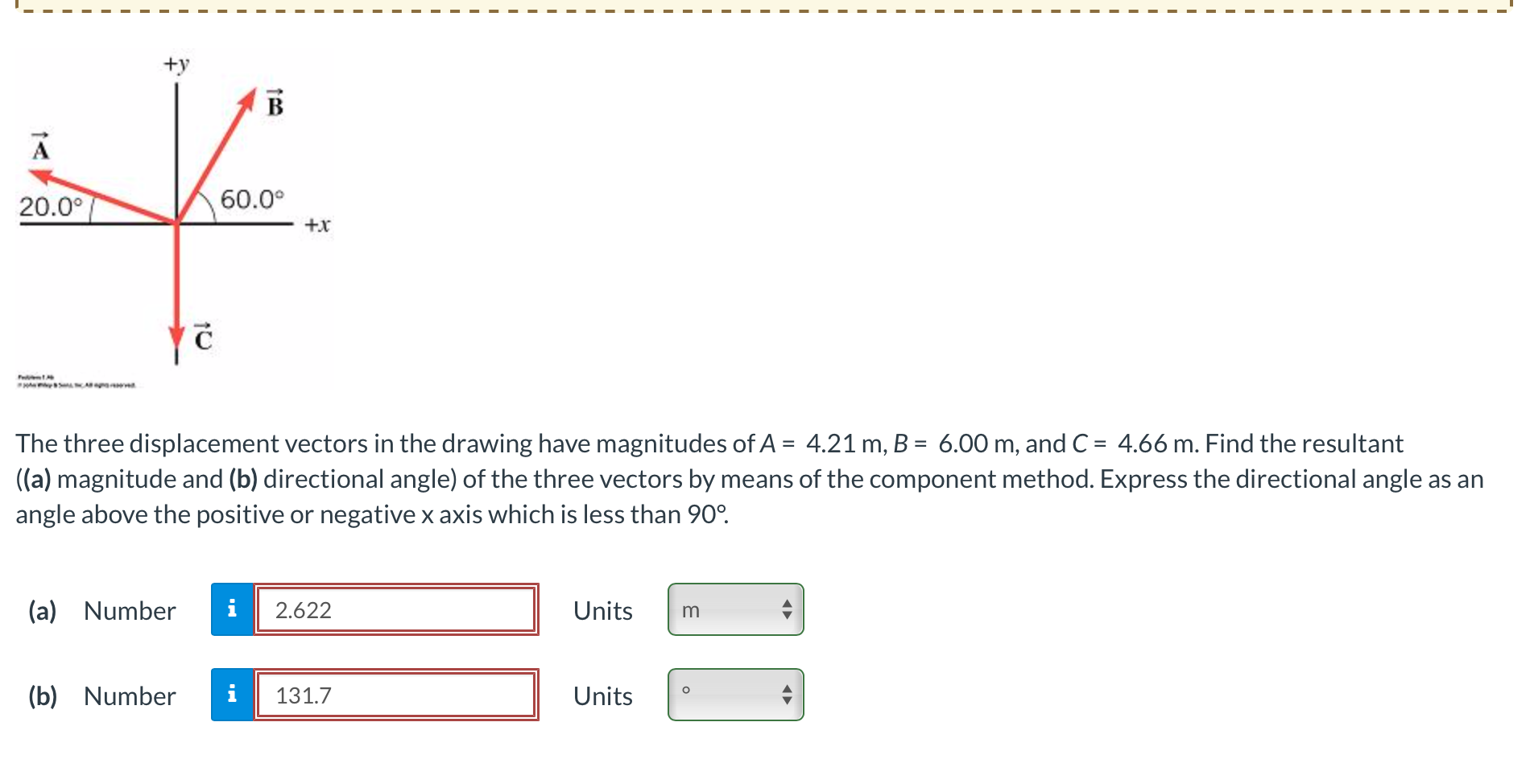 Web the three displacement vectors in the drawing have magnitudes of a = 4.63 m, b = 6.70 m, and c = 4.94 m. Web the three displacement vectors in the drawing have magnitudes of a = 5.00 m, b = 5.00 m, and c = 4.00 m. The three displacement vectors in the drawing have magnitudes of a = 4.05 m, b = 6.02 m, and c = 4.42 m. Find the resultant ((a) magnitude and (b) directional angle) of. Web the three displacement vectors in the drawing have magnitudes of a = 5.30 m, b = 5.05 m, and c = 4.10 m. Find the resultant (magnitude and directional angle) of the three vectors by means of the component method. Web three displacement vectors a → a →, b → b →, and c → c → in a plane (figure 2.13) are specified by their magnitudes a = 10.0, b = 7.0, and c = 8.0, respectively, and by. Web the three displacement vectors in the drawing have magnitudes of a = 5.39 m, b = 6.12 m, and c = 3.70 m. Web knowing the magnitudes of aand b, we can calculate. Web the three displacement vectors in the drawing have magnitudes of a = 5.00 m, b = 5.00 m, and c =.