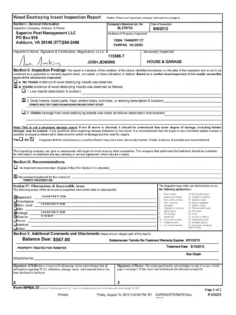 The wonderful Termite Inspection Sample Termite Inspection Report With